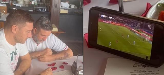 托蒂和坎德拉正在邁阿密參加EA7世界傳奇人物Padel網(wǎng)球巡回賽的決賽??驳吕谏缃幻襟w發(fā)布動態(tài),視頻中他們兩人在邁阿密的一家餐廳用手機(jī)觀看羅馬對陣那不勒斯的比賽直播。