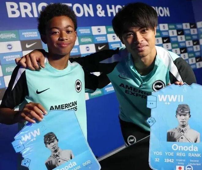 布萊頓俱樂部青訓學院的X賬號11月27日發(fā)布一篇祝賀帖,稱其U12梯隊贏得了英超聯(lián)賽教育項目,將前往比利時參加“圣誕休戰(zhàn)杯”,并配上了一張小球員與三笘薰的合照,兩人手持印有小野田寬郎身著軍裝照片的卡片。